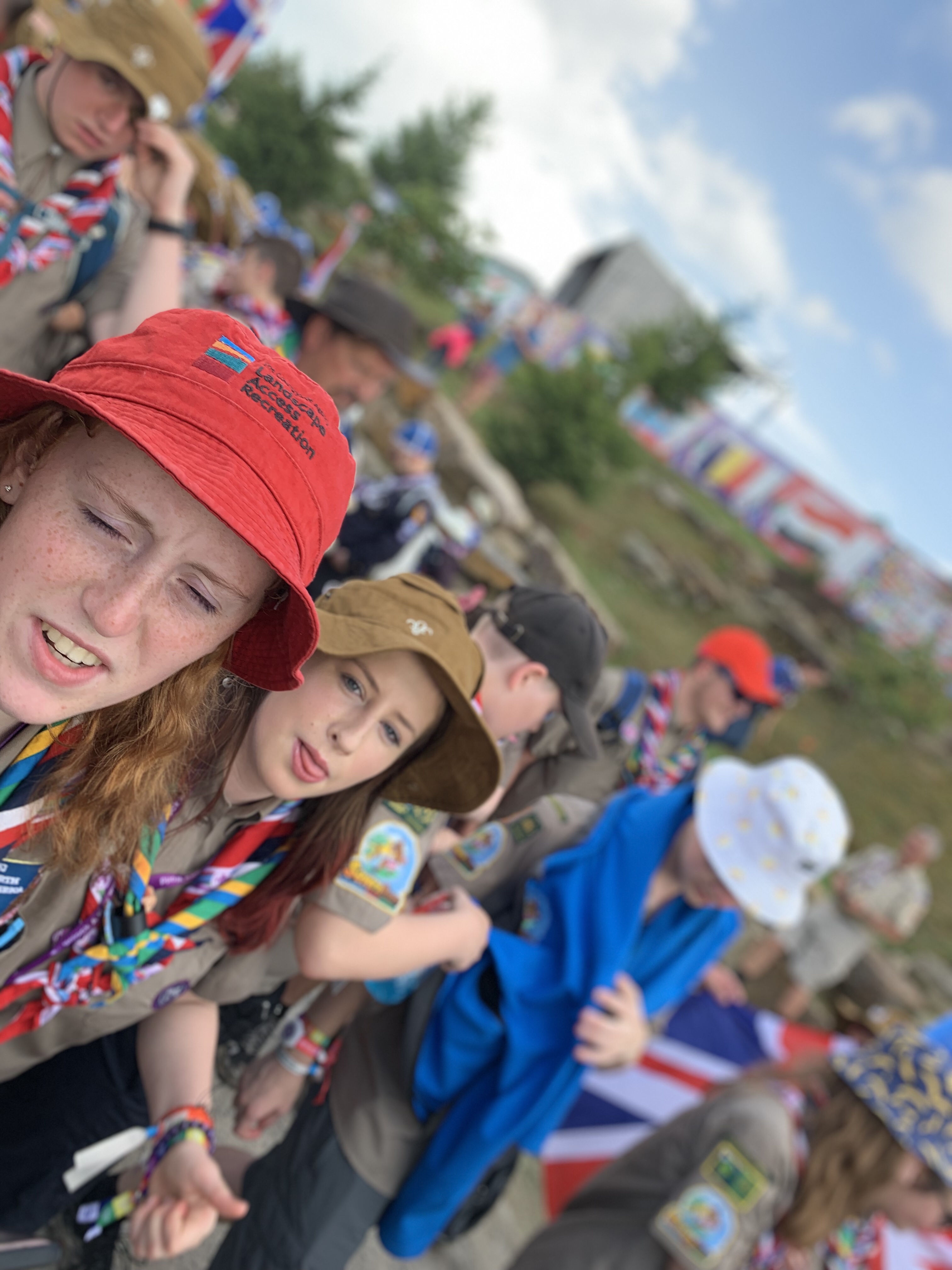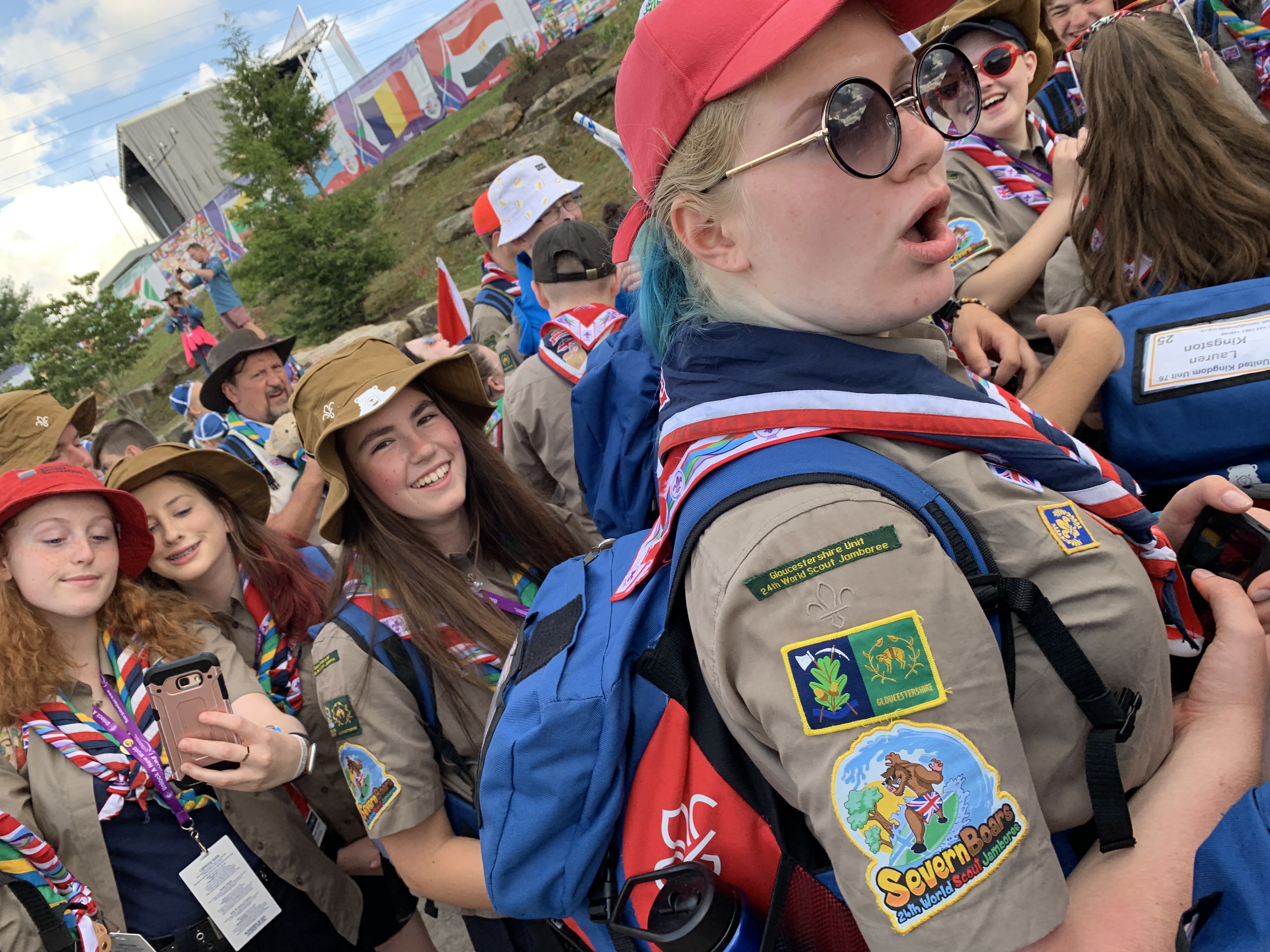 Music was playing and 1,000 of Scouts continued to flow in as the Arena filled, “Hi guys are you the Gloucestershire Unit” called a voice, “yes we are”.`It was John May, John started his life in Scouting in Stroud and has taken some major roles in the movement and Duke of Edinburgh amongst others, a top guy and a privilege that he wanted to spend the being with our Scouts to watch the Opening Ceremony which he personally was involved with putting together (more on John and links to his Social media at John May).